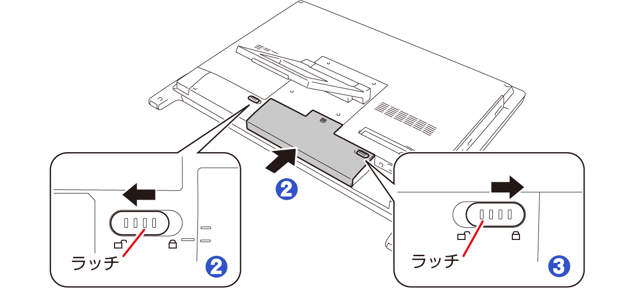 | 右側のラッチをロック位置( |